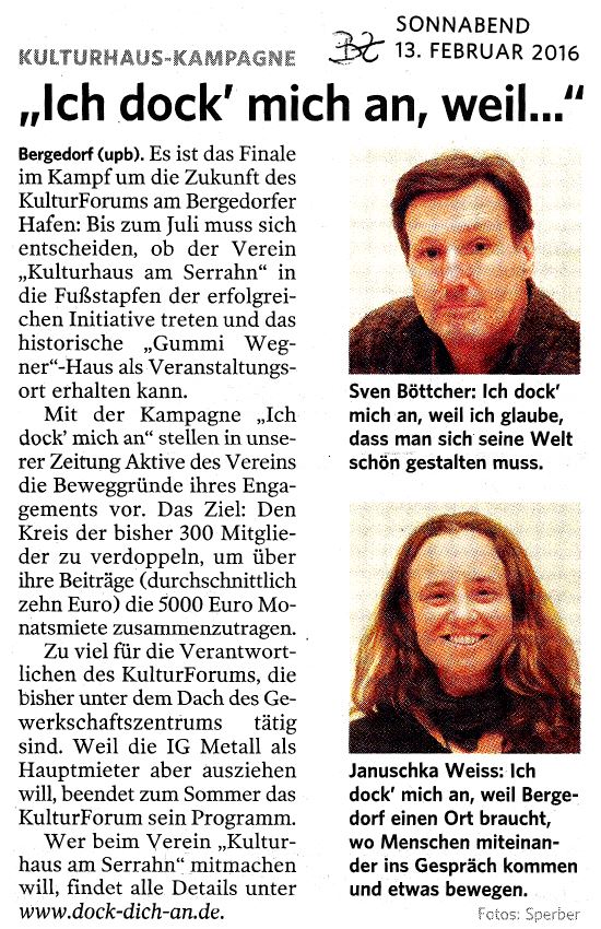 Lesen Sie den Artikel aus der Bergedorfer Zeitung vom 13. Februar 2016.